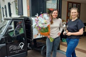 IJssalon Pisa in Zevenaar heeft de Voedselveiligheid Bokaal 2023 gewonnen. Eigenaar Coco Strijbosch kreeg de bokaal in haar ijssalon overhandigd door Pam Papen, inspecteur Voedselveiligheid